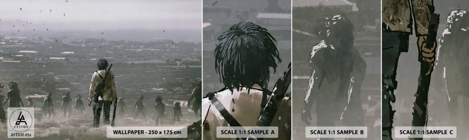 Provbit av självhäftande fototapet Deluxe Sticker - Den siste rättvise? - Abstraktion, Fantasi, Armé - 100x30 cm