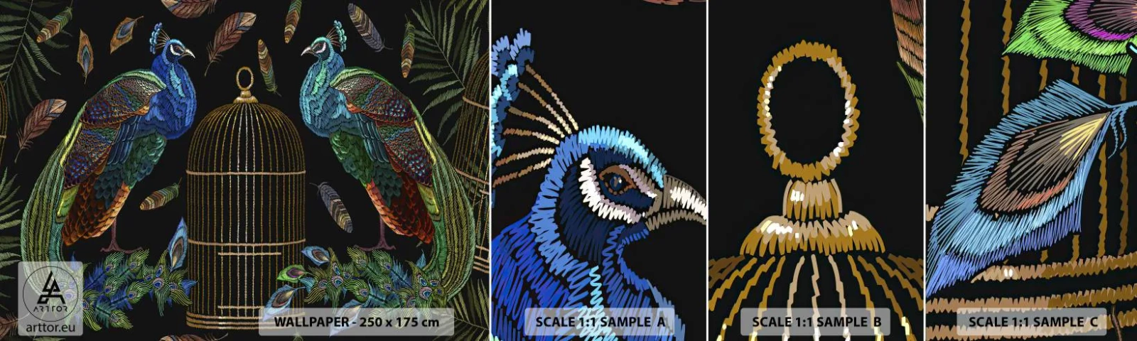 Provbit av självhäftande fototapet Deluxe Sticker - I kungliga kläder - Abstraktion, Påfågel, Påfågel fjäder - 100x30 cm