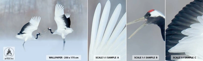 Provbit av självhäftande fototapet Deluxe Sticker - Dansen i dimman - Vinter, Fågel, Natur - 100x30 cm