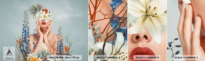 Provbit av självhäftande fototapet Deluxe Sticker - Kvinna - blomma - Abstraktion, Kvinna, Blommor - 100x30 cm