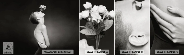 Provbit av självhäftande fototapet Deluxe Sticker - Excentrisk elegans - Kropp, Blommor, Modell - 100x30 cm