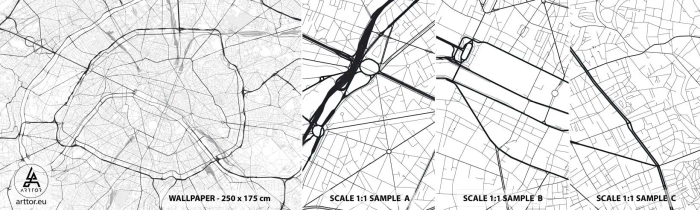 Provbit av självhäftande fototapet Deluxe Sticker - Paris blomma - Stad, Stadskarta, Paris - 100x30 cm
