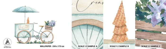 Provbit av självhäftande fototapet Deluxe Sticker - Sött minne av sommaren - Pastell, Glass, Cykel - 100x30 cm
