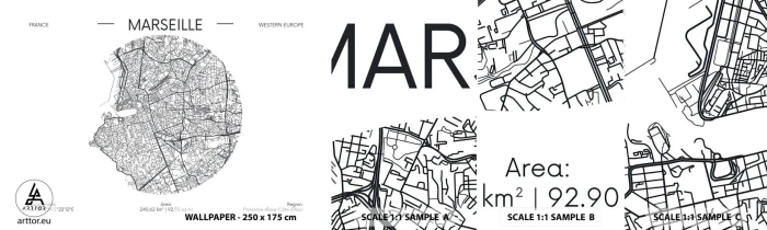 Provbit av självhäftande fototapet Deluxe Sticker - Marseilles anatomi - Karta, Marseille, Frankrike - 100x30 cm
