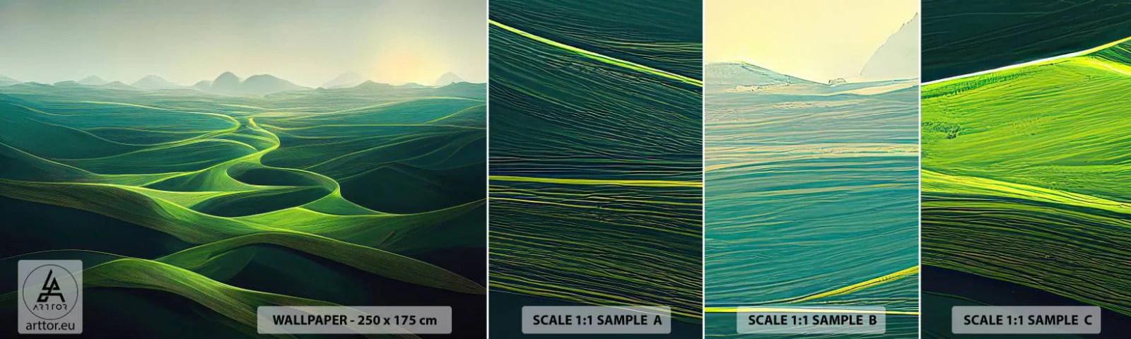 • Landskap, äng, dal, Abstraktioner, landskap, konst, För kontoret, För arbetsrummet, För matsalen, För hallen, För vardagsrummet, För sovrummet, Grå, grön, Nivåer