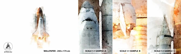Provbit av självhäftande fototapet Deluxe Sticker - Upptäckare efter start - En rymdraket, Kosmos, Minimalism - 100x30 cm