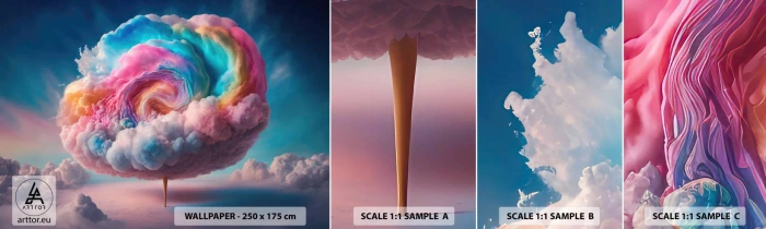 Provbit av självhäftande fototapet Deluxe Sticker - En dröm om en nöjespark - Pastell, Moln, Sockerhaltig - 100x30 cm