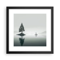 Affisch i svart ram - Ett ensamt träd på en ö med en reflektion i vattnet - 50x70cm - En dröm - Modern väggdekoration för vardagsrum och sovrum ARTTOR
