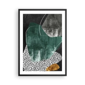 Affisch i svart ram - Abstrakt komposition i grönt och guld - 50x70cm - Färgstark abstraktion med en guldflinga - Modern väggdekoration för vardagsrum och sovrum ARTTOR