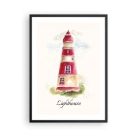 Affisch i svart ram - Akvarell illustration av en fyr på en ljus bakgrund - 50x70cm - Det är alltid något väder - Modern väggdekoration för vardagsrum och sovrum ARTTOR