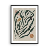 Affisch i svart ram - Abstrakt växtkomposition i grönt och beige - 50x70cm - Bland de gröna - Modern väggdekoration för vardagsrum och sovrum ARTTOR