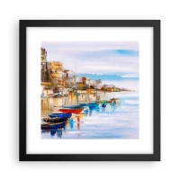 Affisch i svart ram - Flerfärgad urban hamn - 30x30 cm