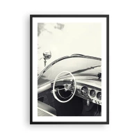 Affisch i svart ram - Interiör i en klassisk bil med ratt - 50x70cm - Väder för de rika - Modern väggdekoration för vardagsrum och sovrum ARTTOR