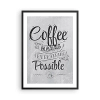 Affisch i svart ram - Kaffeposter med griffeltavleliknande bokstäver - 50x70cm - Of course! - Modern väggdekoration för vardagsrum och sovrum ARTTOR