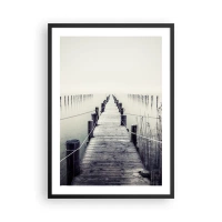 Affisch i svart ram - En träbro som leder ut i en dimmig vattenyta - 50x70cm - Fördjupa dig i frid - Modern väggdekoration för vardagsrum och sovrum ARTTOR