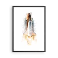 Affisch i svart ram - Rymdfärjan i akvarellstil lyfter - 50x70cm - Upptäckare efter start - Modern väggdekoration för vardagsrum och sovrum ARTTOR