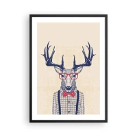 Affisch i svart ram - Snygg hjort med glasögon och fluga på beige bakgrund - 50x70cm - Rolig extravagans - Modern väggdekoration för vardagsrum och sovrum ARTTOR