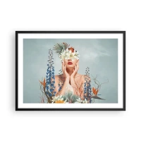 Affisch i svart ram - Kvinna - blomma - 70x50 cm