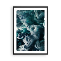 Affisch i svart ram - En abstrakt komposition av virvlande färger i nyanser av grönt och blått. - 50x70cm - Färg i rörelse - Modern väggdekoration för vardagsrum och sovrum ARTTOR