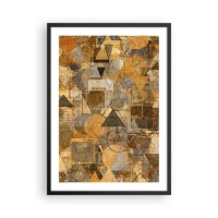 Affisch i svart ram - Gyllene abstrakt geometrisk komposition - 50x70cm - Värld infattad i form - Modern väggdekoration för vardagsrum och sovrum ARTTOR