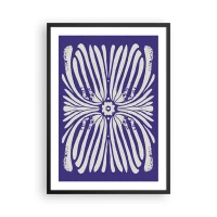 Affisch i svart ram - Symmetriskt retro blommönster på marinblå bakgrund - 50x70cm - Etnisk inspiration - Modern väggdekoration för vardagsrum och sovrum ARTTOR