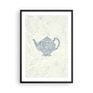 Affisch i svart ram - En dekorativ illustration av en tekanna med ett subtilt mönster mot en ljus bakgrund. - 50x70cm - Techarm - Modern väggdekoration för vardagsrum och sovrum ARTTOR