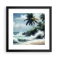 Affisch i svart ram - På en tropisk strand - 30x30 cm