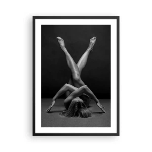 Affisch i svart ram - En konstnärlig tolkning av en kvinnlig silhuett i svartvitt - 50x70cm - Nakenhetens geometri - Modern väggdekoration för vardagsrum och sovrum ARTTOR