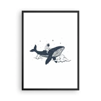 Affisch i svart ram - Ett akvarellluftskepp som svävar bland stjärnorna och molnen. - 50x70cm - Luftskepp - Modern väggdekoration för vardagsrum och sovrum ARTTOR