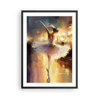 Affisch i svart ram - En ballerina i scenens gyllene ljus - 50x70cm - Ett mirakel på gatan - Modern väggdekoration för vardagsrum och sovrum ARTTOR