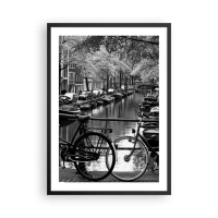 Affisch i svart ram - Sepiafärgade cyklar vid kanalen - 50x70cm - Holländsk stämning - Modern väggdekoration för vardagsrum och sovrum ARTTOR