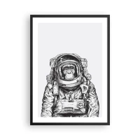 Affisch i svart ram - En apa i rymddräkt på vit bakgrund - 50x70cm - Alternativ evolution - Modern väggdekoration för vardagsrum och sovrum ARTTOR