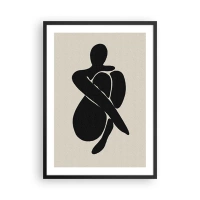 Affisch i svart ram - Abstrakt figur i en pose med armar lindade runt kroppen, svartvit illustration - 50x70cm - I min egen famn - Modern väggdekoration för vardagsrum och sovrum ARTTOR