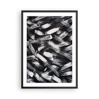 Affisch i svart ram - Minimalistisk svartvit abstraktion med geometriska linjer - 50x70cm - Intensiv och dynamisk komposition - Modern väggdekoration för vardagsrum och sovrum ARTTOR