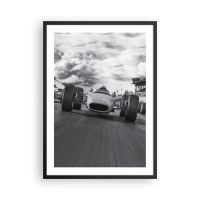 Affisch i svart ram - Retro racerbil på bana i svart och vitt - 50x70cm - Kraften finns! - Modern väggdekoration för vardagsrum och sovrum ARTTOR
