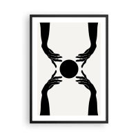 Affisch i svart ram - Svartvit grafik av en hand med en boll - 50x70cm - Ett hemligt tecken - Modern väggdekoration för vardagsrum och sovrum ARTTOR