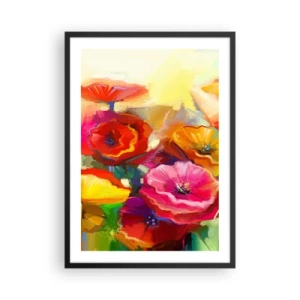 Affisch i svart ram - Färgglada vallmo på en abstrakt bakgrund - 50x70cm - Inte bara rött - Modern väggdekoration för vardagsrum och sovrum ARTTOR