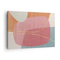 Canvastavla - Bild på duk - Abstrakta former i pastellfärger med fina linjer - 70x50cm - Pastellkomposition med guldtråd - Modern väggdekoration för vardagsrum och sovrum ARTTOR