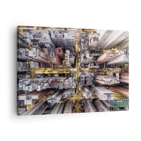 Canvastavla - Bild på duk - Ett fågelperspektiv över en stad full av skyskrapor - 70x50cm - Hälsningar från Hongkong - Modern väggdekoration för vardagsrum och sovrum ARTTOR