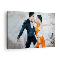 Canvastavla - Bild på duk - Ett dynamiskt par som dansar i latinamerikansk stil. - 70x50cm - Dirty dancing - Modern väggdekoration för vardagsrum och sovrum ARTTOR
