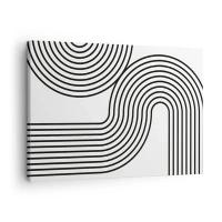 Canvastavla - Bild på duk - En abstrakt målning med svarta linjer som skapar geometriska mönster mot en vit bakgrund. - 70x50cm - På en kurva - Modern väggdekoration för vardagsrum och sovrum ARTTOR