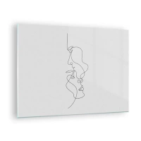 Glastavla - Bild på glas - En delikat teckning av två ansikten i en kontur - 70x50cm - Sentimentala lustens glöd - Modern väggdekoration för vardagsrum och sovrum ARTTOR