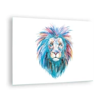 Glastavla - Bild på glas - Färgglatt porträtt av ett lejon i konstnärlig stil - 70x50cm - Elektrifierande aura - Modern väggdekoration för vardagsrum och sovrum ARTTOR