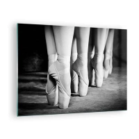 Glastavla - Bild på glas - Ballerinor på tåspetsar i svartvit miljö - 70x50cm - Tillsammans, lätt - Modern väggdekoration för vardagsrum och sovrum ARTTOR
