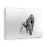 Glastavla - Bild på glas - Svartvitt porträtt av en majestätisk gorilla mot en vit bakgrund - 70x50cm - Övertygad om sin styrka - Modern väggdekoration för vardagsrum och sovrum ARTTOR