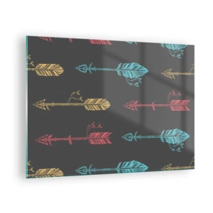Glastavla - Bild på glas - Färgglada pilar på en mörk bakgrund i en grafisk layout - 70x50cm - I ordning - Modern väggdekoration för vardagsrum och sovrum ARTTOR