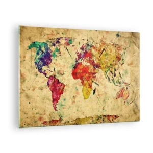 Glastavla - Bild på glas - En världskarta i färgglada färgstänk - 70x50cm - Världens alla färger - Modern väggdekoration för vardagsrum och sovrum ARTTOR
