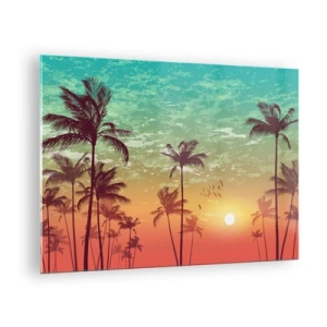 Glastavla - Bild på glas - Illustration av palmer vid solnedgången - 70x50cm - Tropiska klimat - Modern väggdekoration för vardagsrum och sovrum ARTTOR