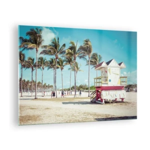 Glastavla - Bild på glas - En strand med palmer och ett livräddartorn på en solig dag - 70x50cm - En vacker dag framför dig - Modern väggdekoration för vardagsrum och sovrum ARTTOR