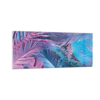 Glastavla - Bild på glas - Tropiken i rosa och blått - 100x40 cm